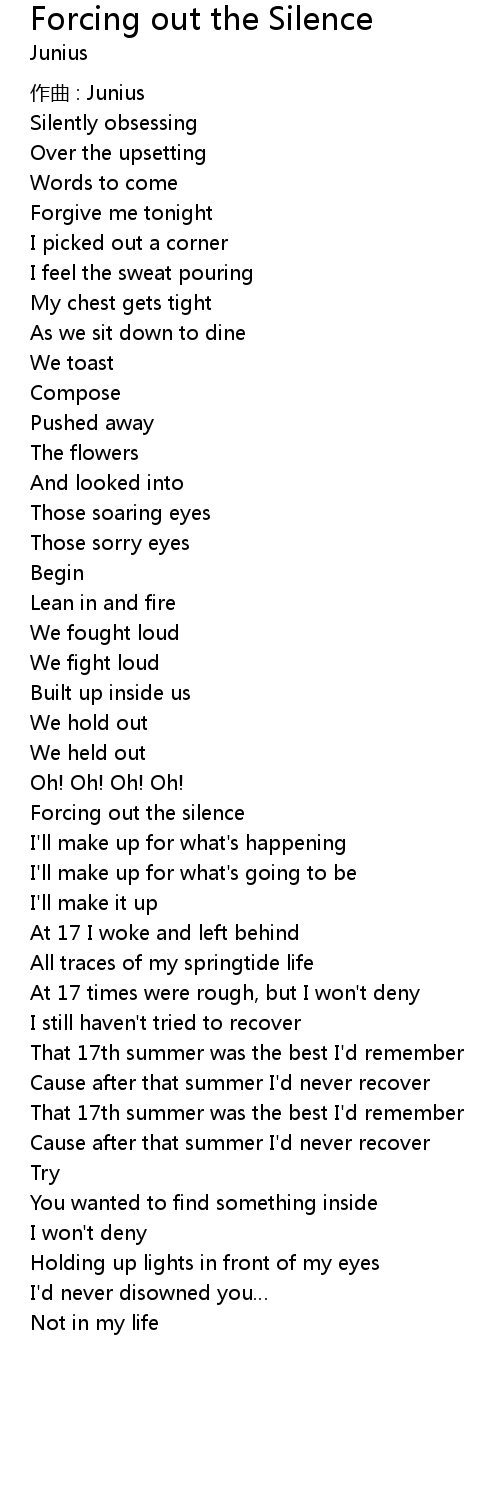 | Song | Forcing out the Silence |