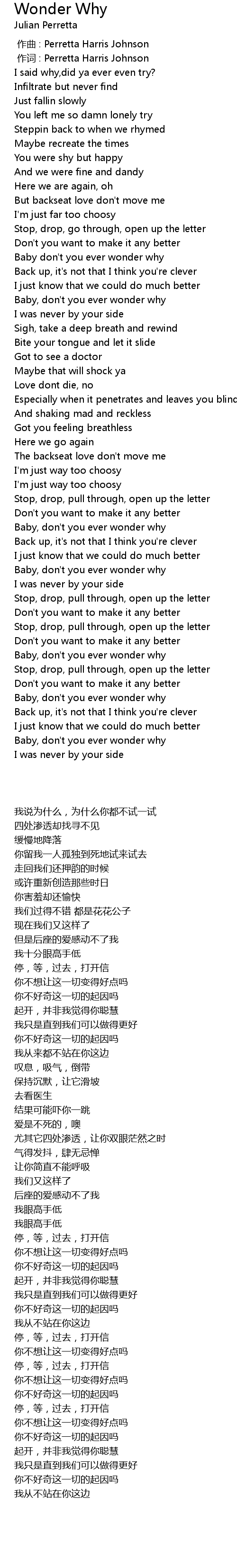 | [03:30.97] | Baby, don't you ever wonder why |