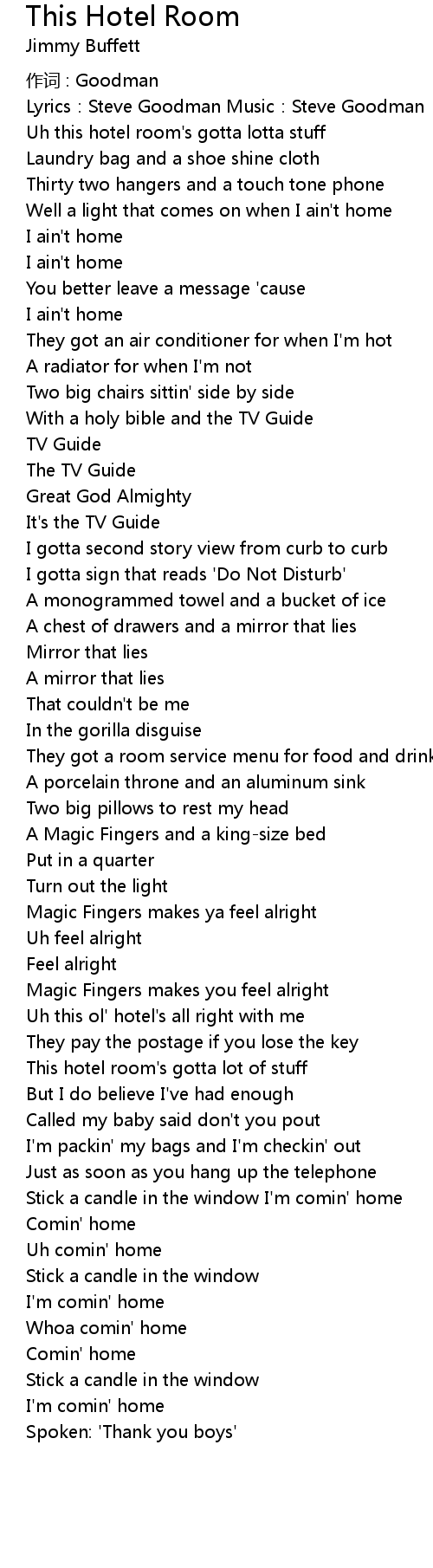 | Uh this ol' hotel' s all right with me | |