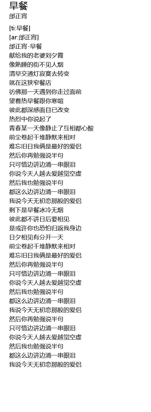 | [00:03.683] | 邰正宵-早餐 |