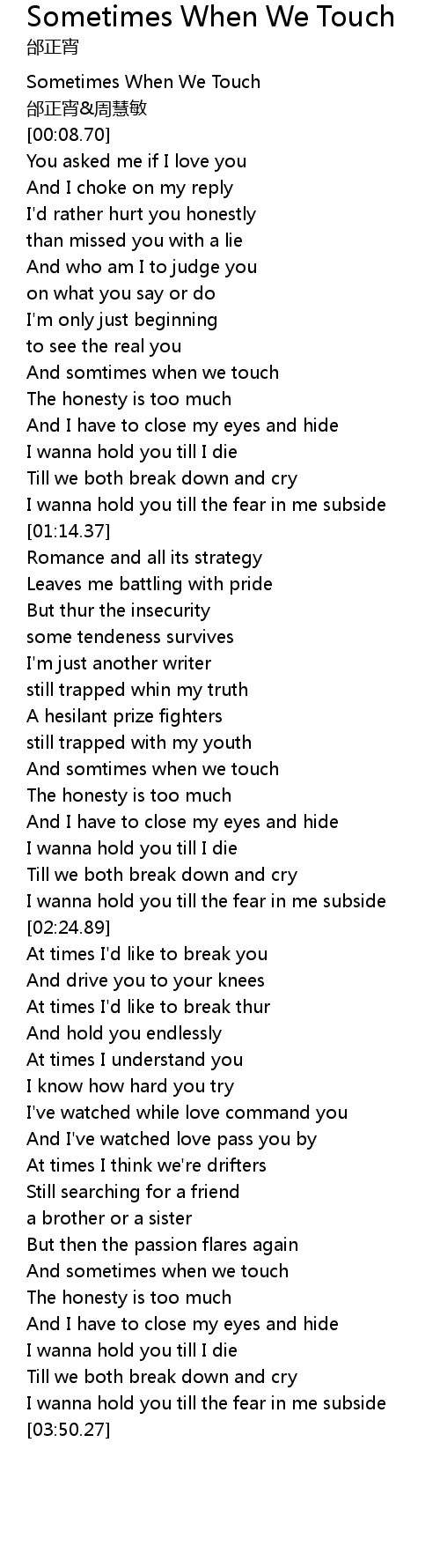 | [03:41.64] | I wanna hold you till the fear in me subside |