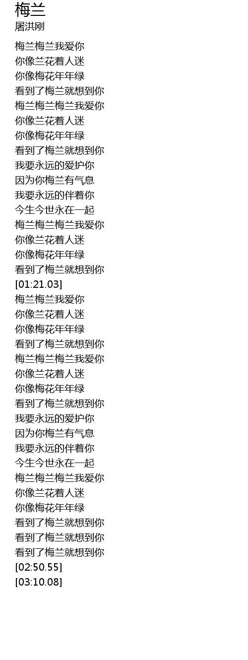 | [01:05.06] | 梅兰梅兰梅兰我爱你 |