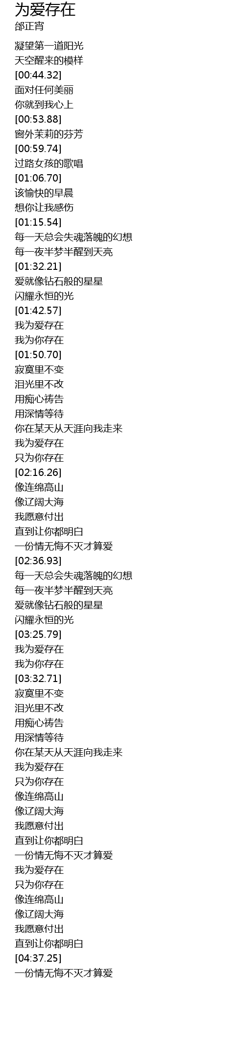 | [03:55.44] | zhǐ wèi nǐ cún zài |