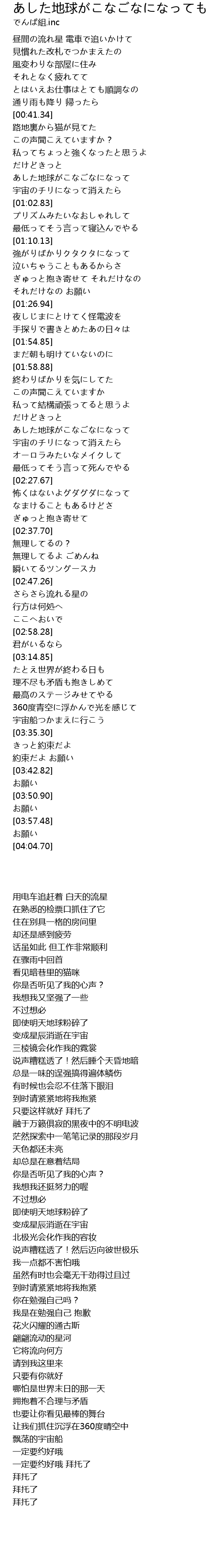 | [00:56.11] | あした地球がこなごなになって |