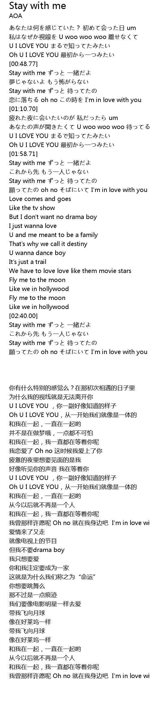 | [02:41.65] | Stay with me ずっと 一緒だよ |