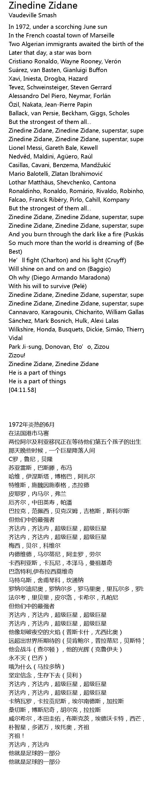 | [03:25.92] | Zinedine Zidane, Zinedine Zidane, superstar, superstar |