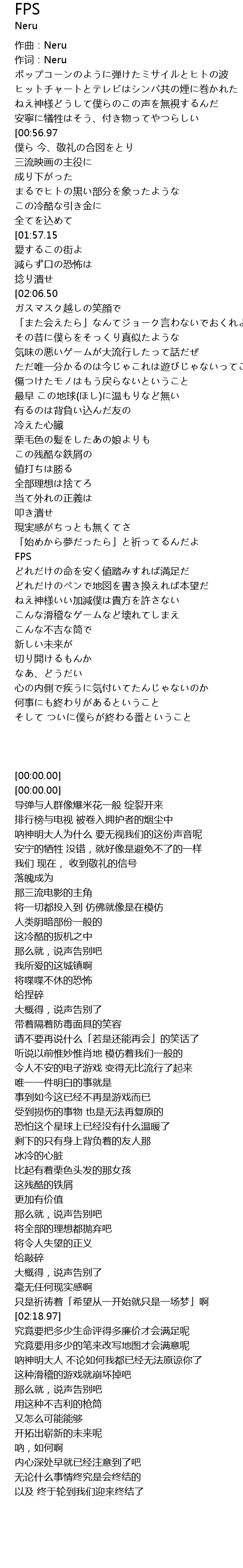 | [00:00.00] | 作词:Neru |