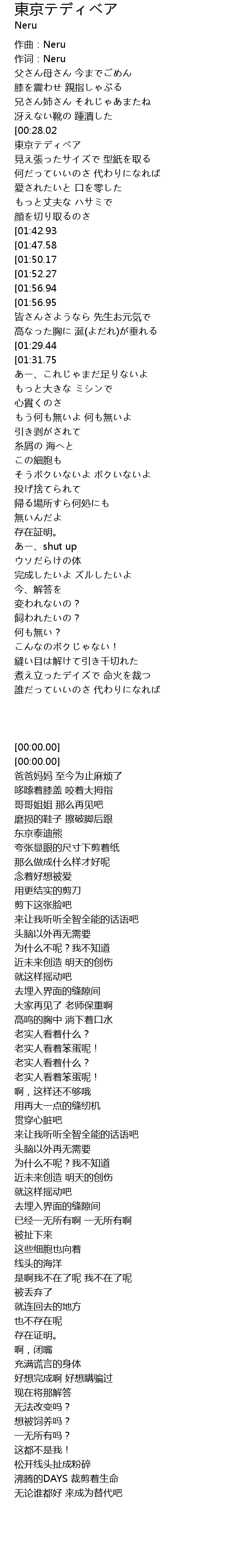 | [00:00.00] | 作词:Neru |