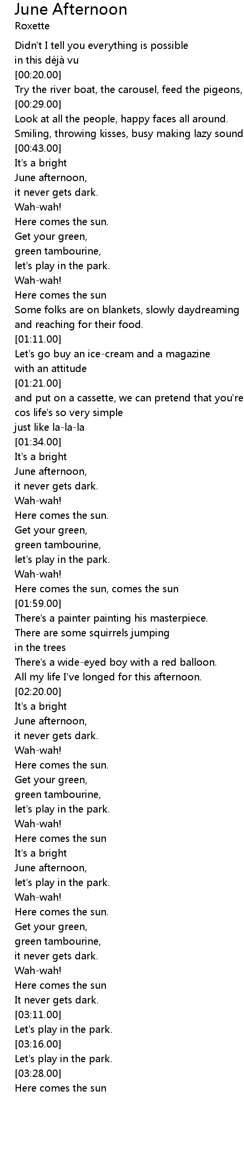 | [03:30.50] | Here comes the sun |