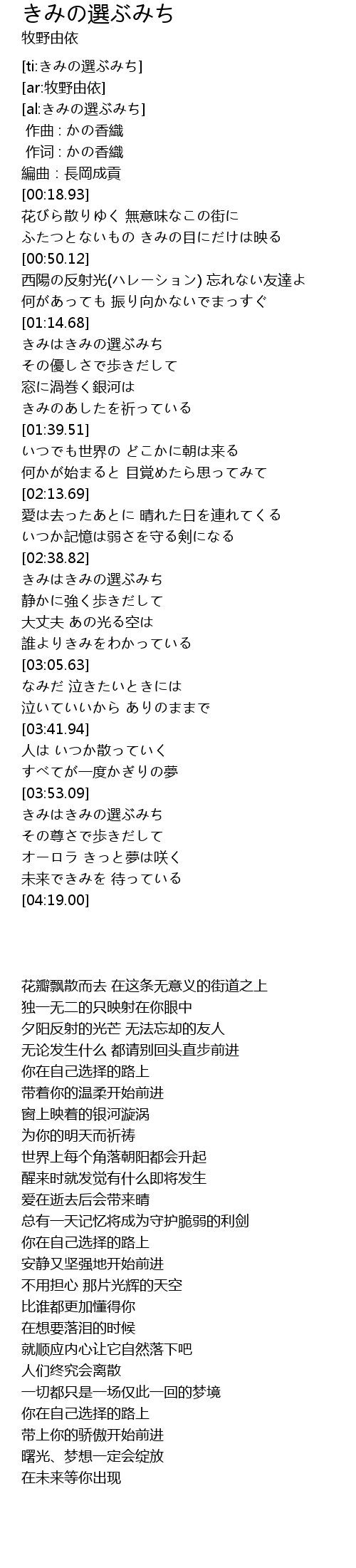 | [03:53.56] | きみはきみの選ぶみち |