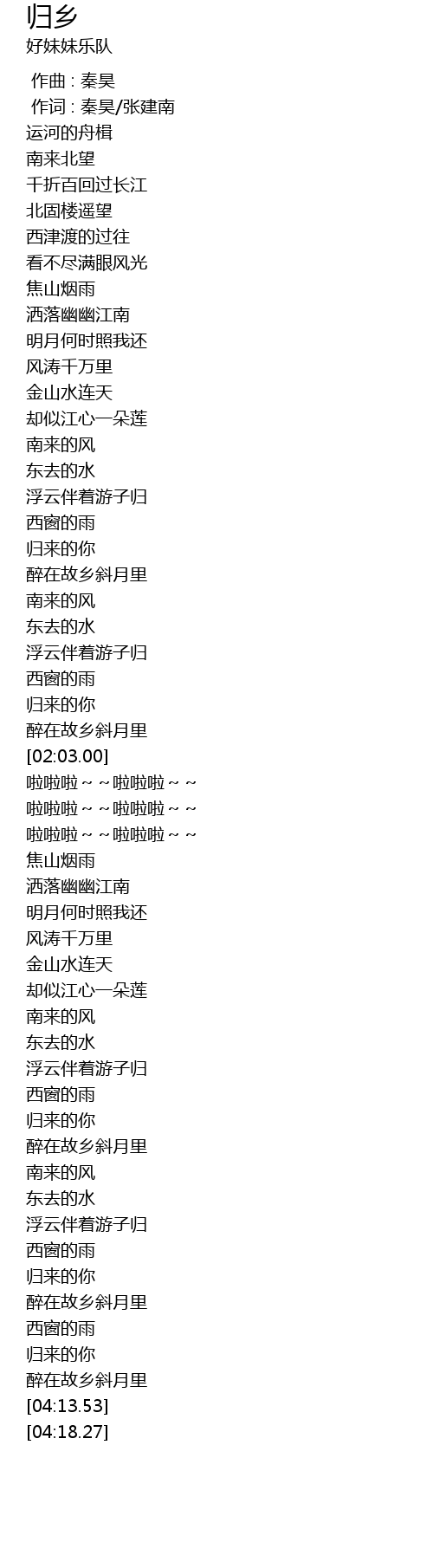| [04:03.05] | 醉在故乡斜月里 |