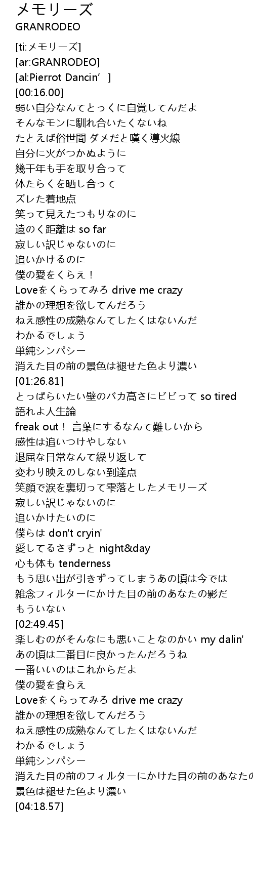 | [03:41.15] | Loveをくらってみろ drive me crazy |