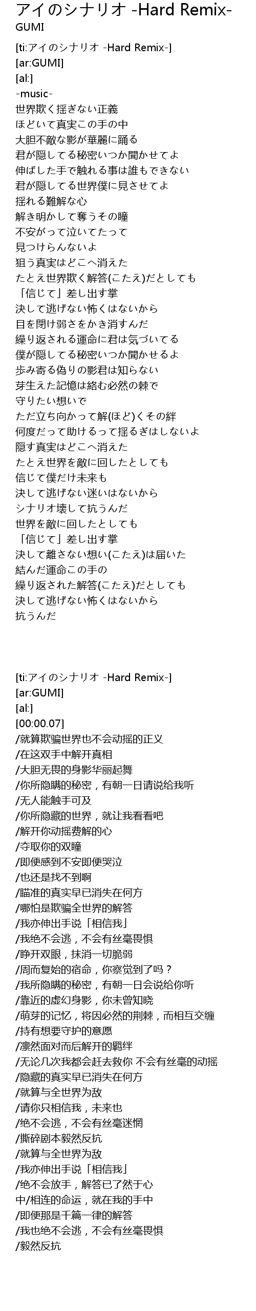 | [ti:アイのシナリオ -Hard Remix-] | |
