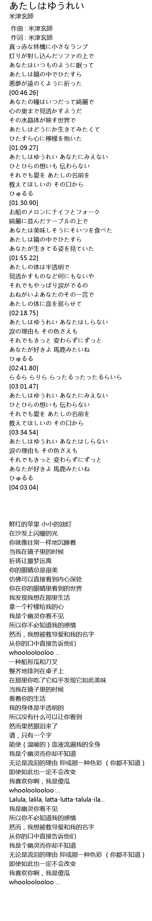 | [03:34.95] | あたしはゆうれい あなたはしらない |