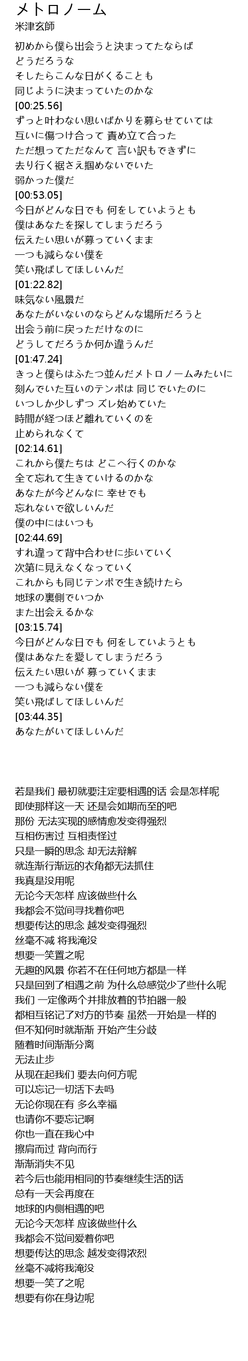 | [01:48.65] | きっと僕らはふたつ並んだメトロノームみたいに |