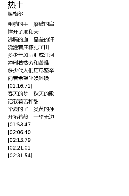 | [01:51.63] | 开拓着热土一望无边 |