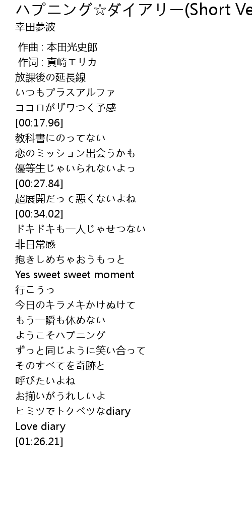 | [01:10.76] | ヒミツでトクベツなdiary |