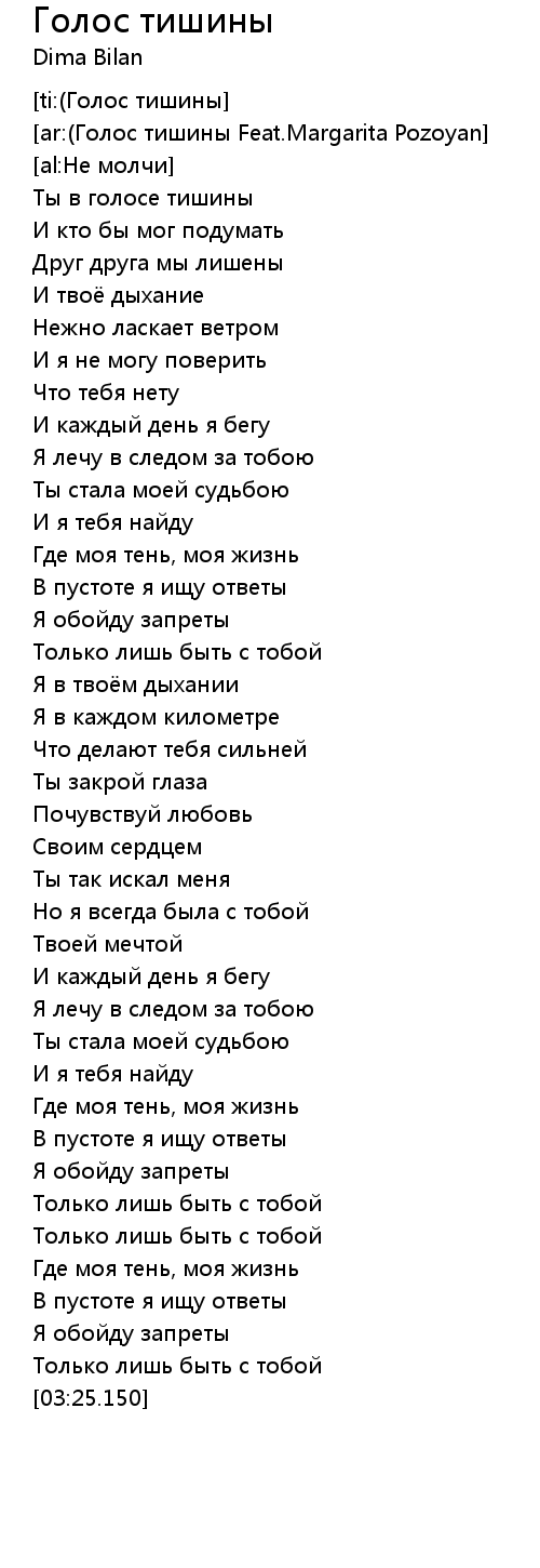 | [ar:(Голос тишины Feat.Margarita Pozoyan] | |