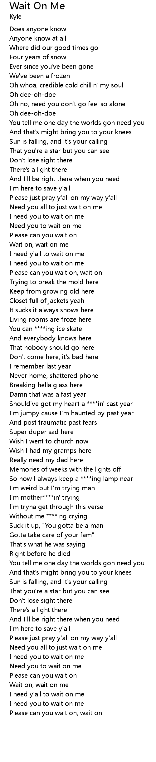 Need you all to just wait on me |