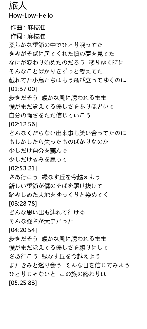 | [05:13.88] | ひとりじゃないと この旅の終わりは |