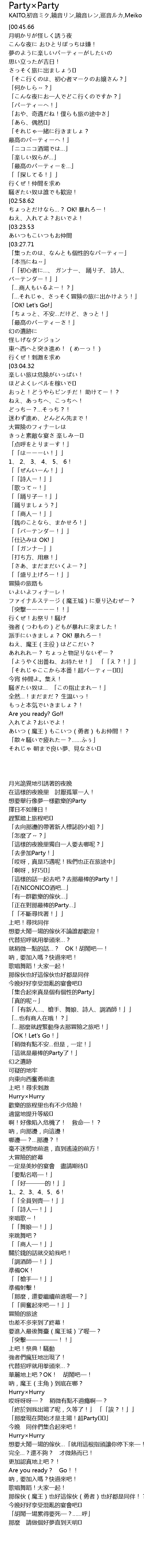 | [03:09.67] | 「それじゃここから本番!超パーティー♪♪」 |