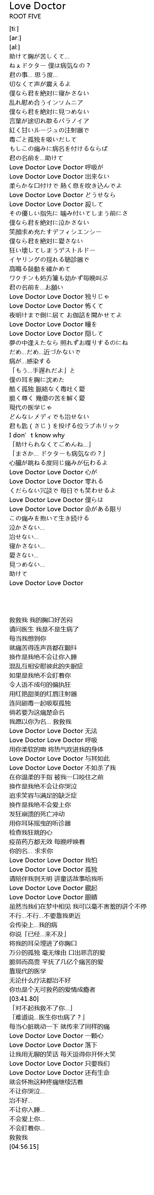 | [04:56.15] | Love Doctor Love Doctor |
