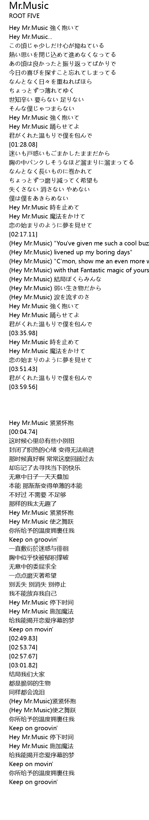 | [03:37.58] | Hey Mr. Music shí zhǐ |