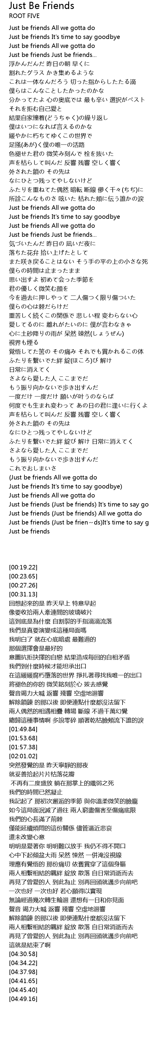 | [04:49.16] | Just be friends (Just be frien~ds)It's time to say goodbye |