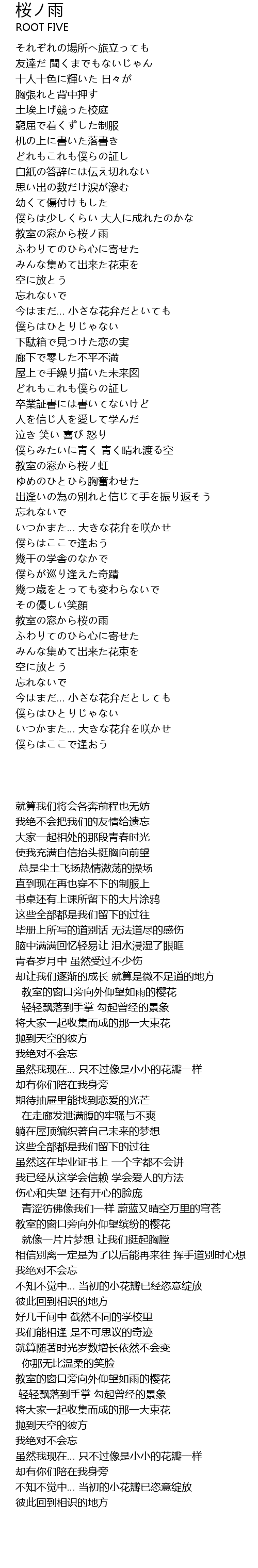 | [01:50.50] | 教室の窓から桜ノ雨 |