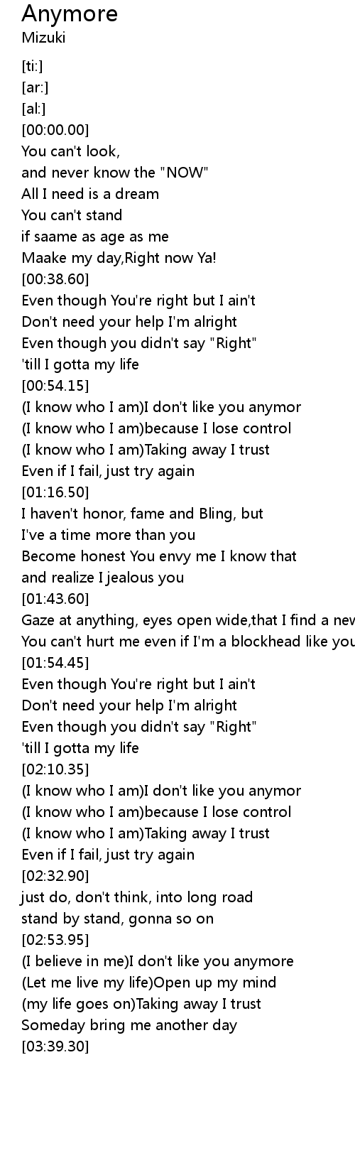 (I know who I am)I don't like you anymor |