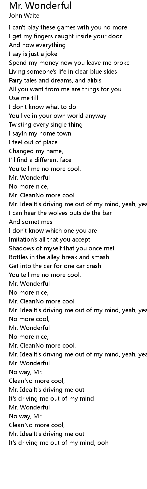 Mr. IdealIt's driving me out of my mind, yeah, yeah |