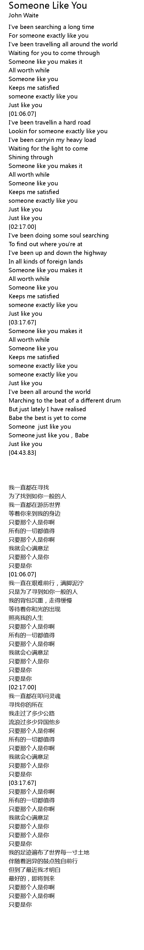 | [01:51.62] | someone exactly like you |