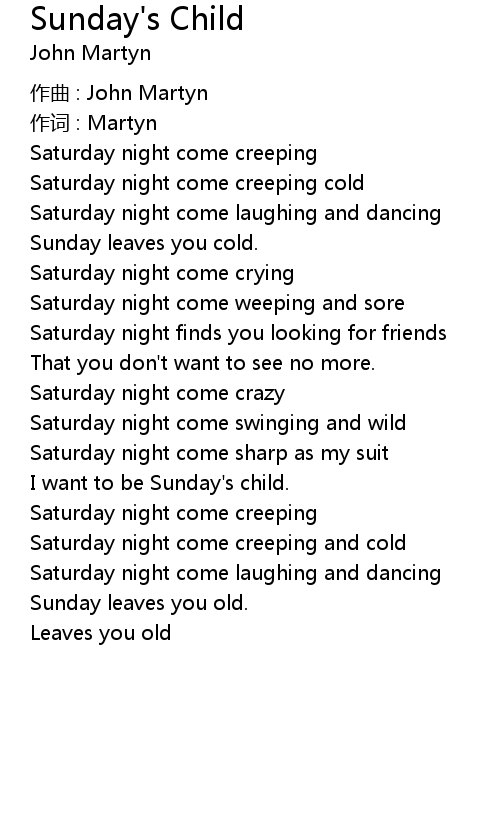 | Song | Sunday's Child |