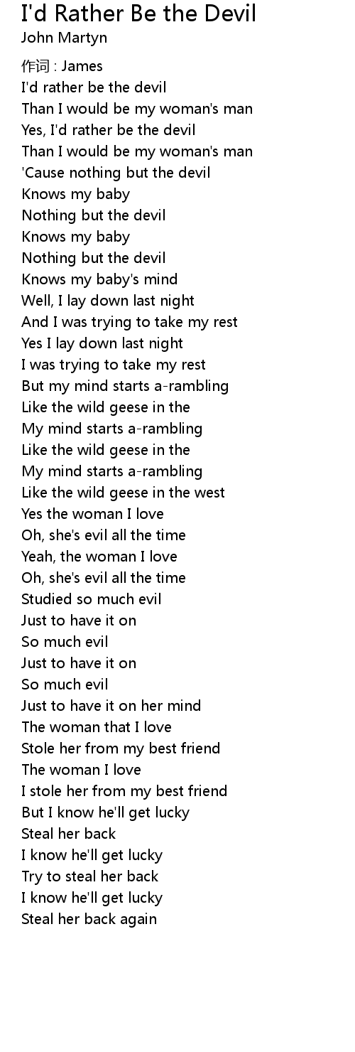 | Yes, I' d rather be the devil | |