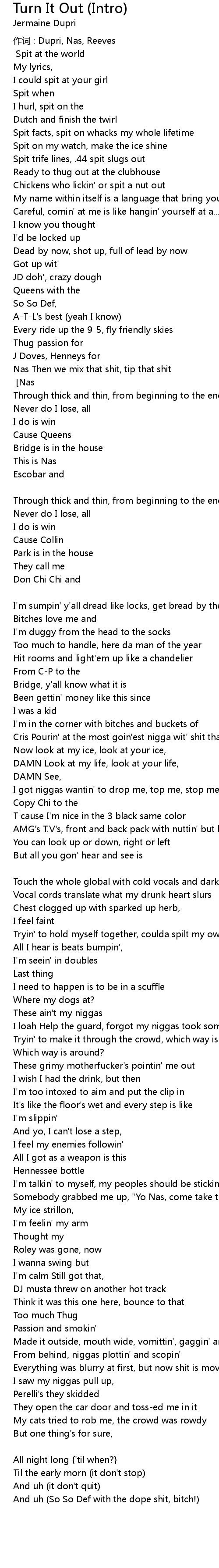 | 作词 : Dupri, Nas, Reeves | |