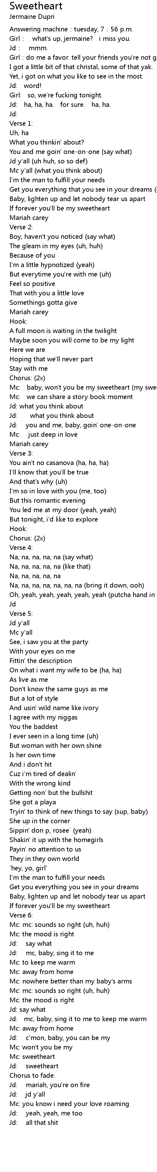 | Mc: baby, won' t you be my sweetheart my sweetheart | |