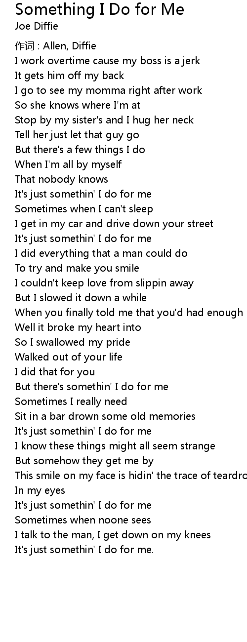 | But there's somethin' I do for me | |