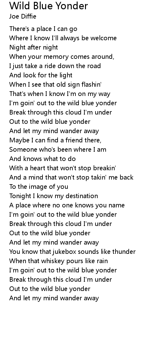 I'm goin' out to the wild blue yonder |