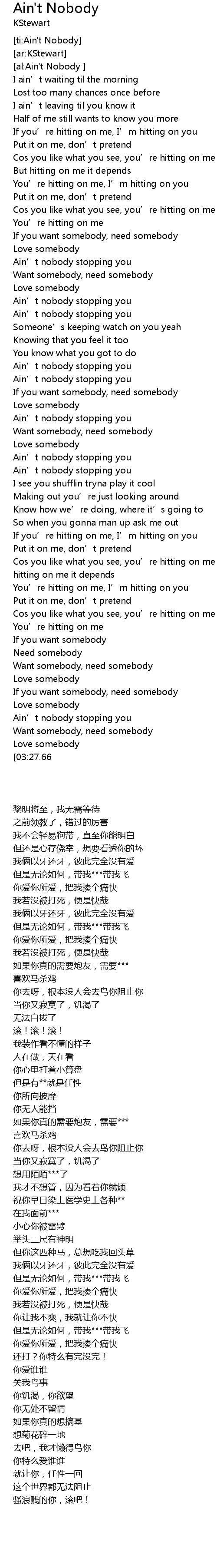 | [03:43.94][03:27.66] | Ain' t nobody stopping you |