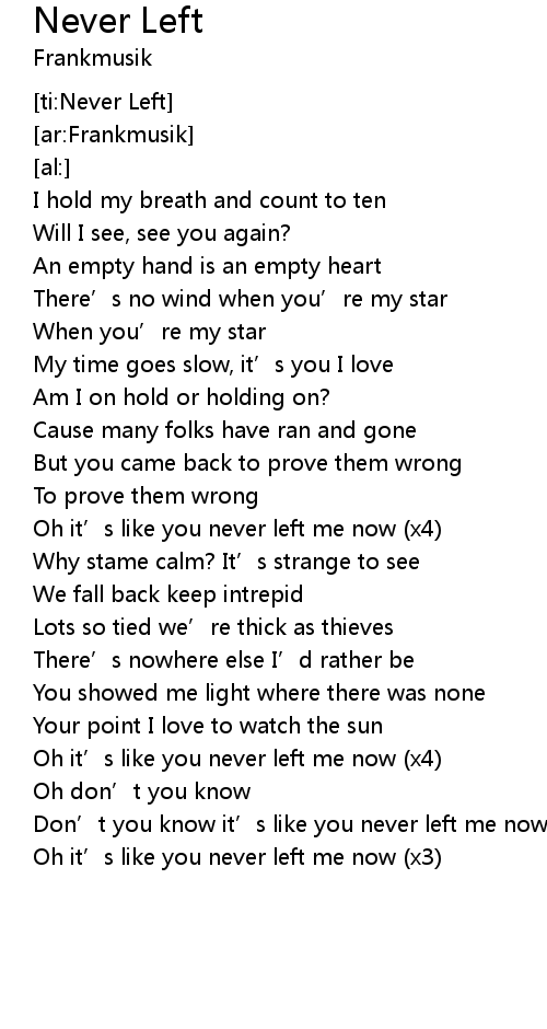 | [02:02.88] | Oh it’s like you never left me now (x4) |