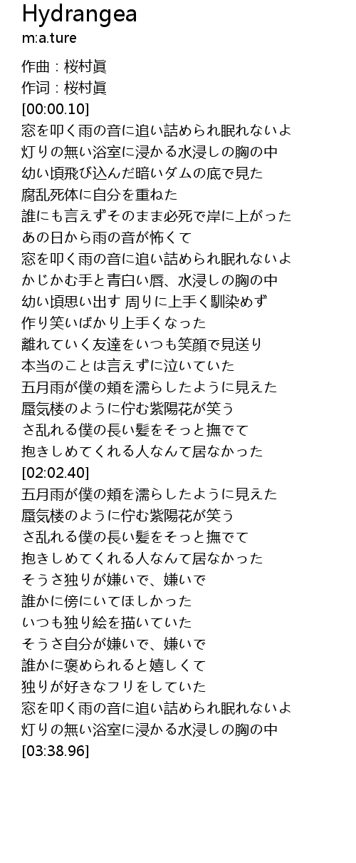 | [02:34.52] | 蜃気楼のように佇む紫陽花が笑う |