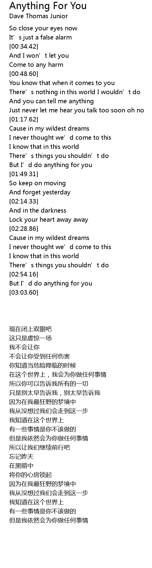 | [00:55.70] | There' s nothing in this world I wouldn' t do |