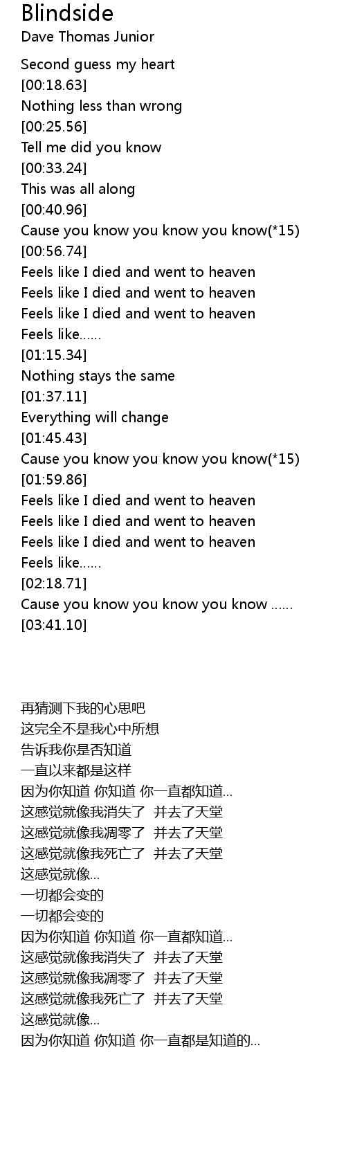 | [02:03.78] | Feels like I died and went to heaven |