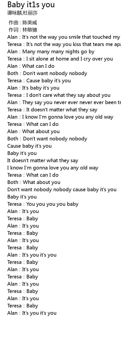 | [00:50.91] | Teresa: Cause baby it' s you |