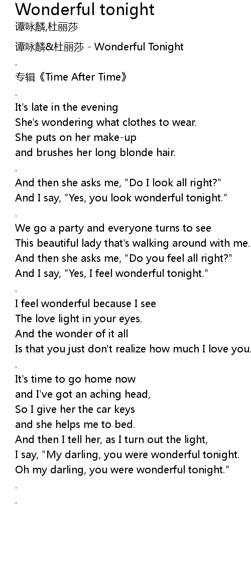 [00:52.74] And I say, "Yes, you look wonderful tonight."