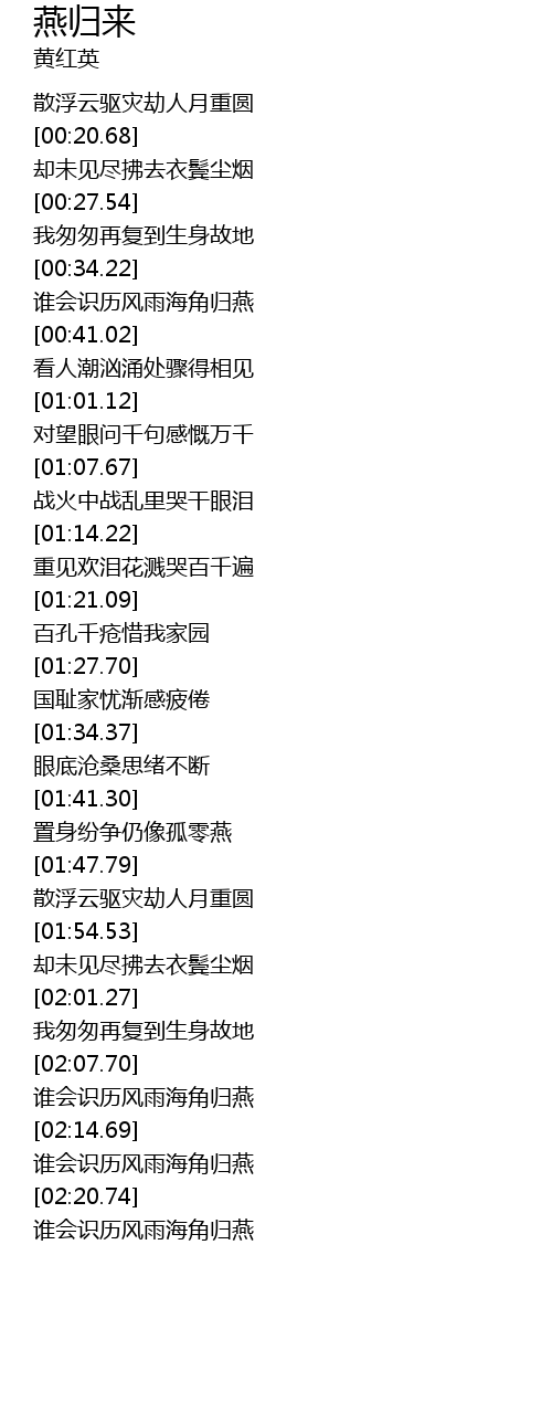 | [01:41.92] | 置身纷争仍像孤零燕 |