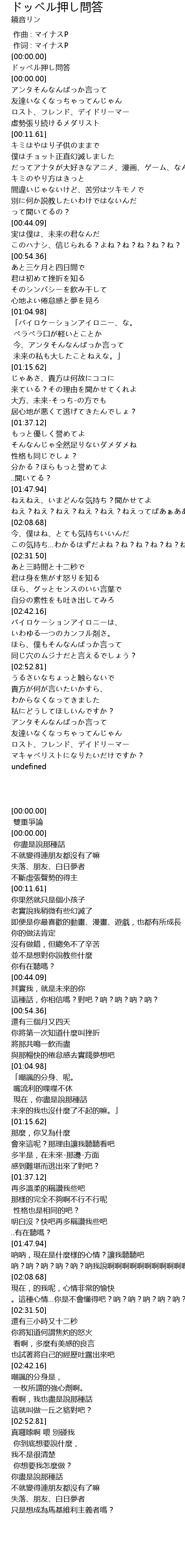 | [00:00.00] | ドッペル押し問答 |