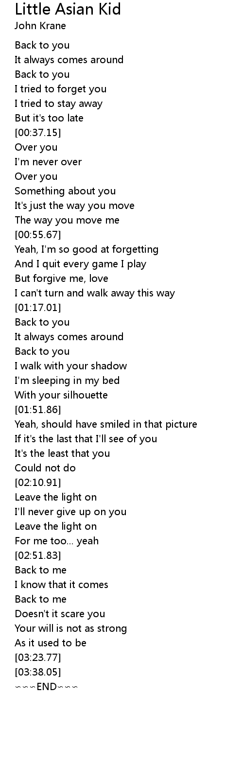 | [02:19.16] | Leave the light on |