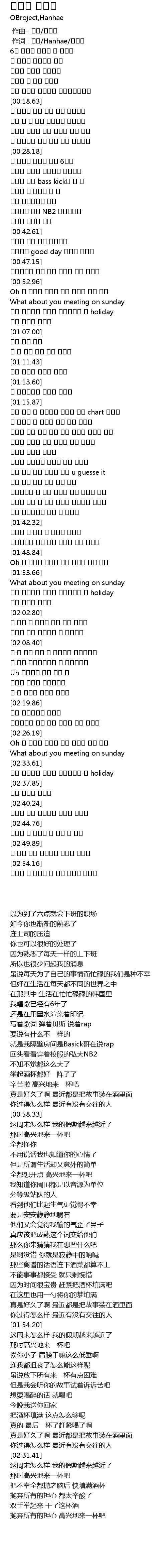 | [01:00.99] | 이번 주말에는 어떠니 가까워지는 내 holiday |
