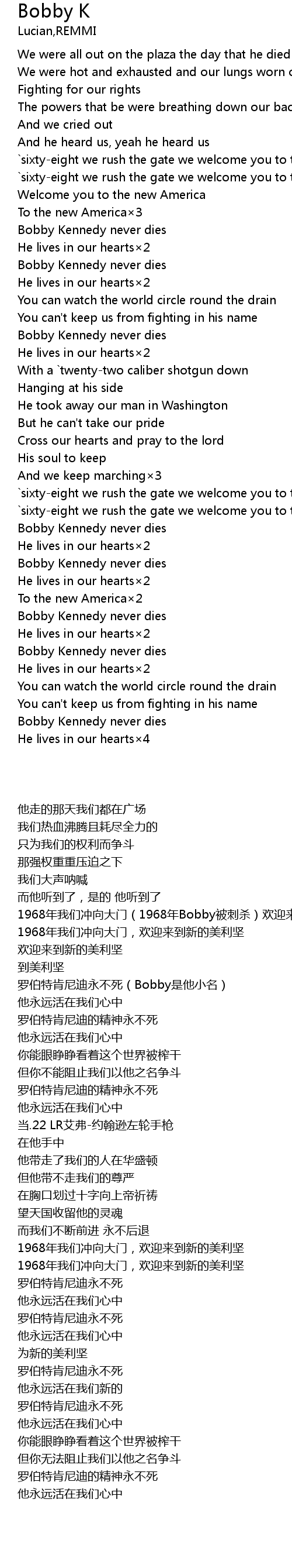| [00:25.15] | sixtyeight we rush the gate we welcome you to the new America |